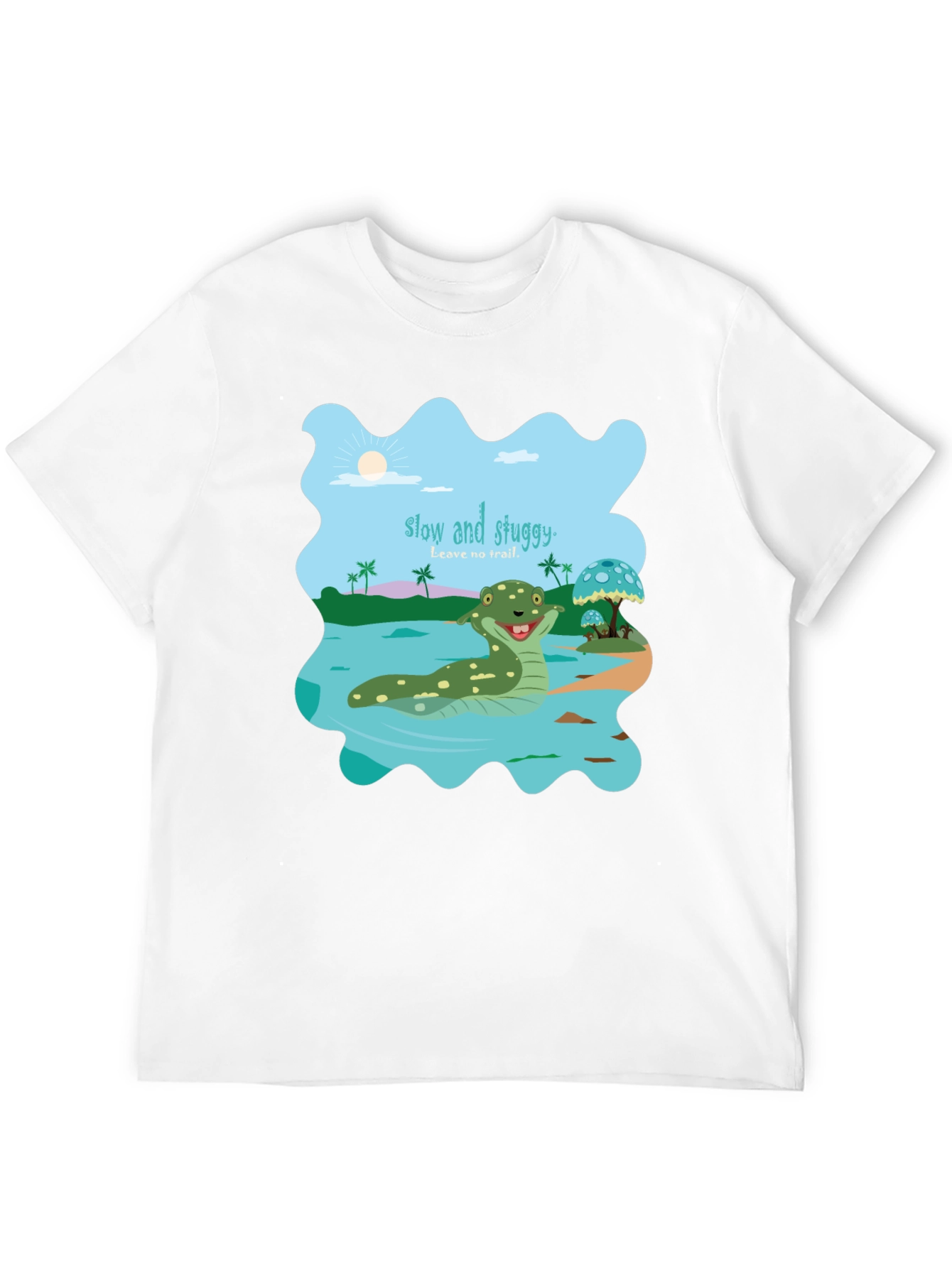 ¡Añade un toque de diversión a tu guardarropa con esta camiseta única para hombre! Con un diseño original que presenta un simpático personaje de serpiente en un paisaje tropical, esta camiseta es perfecta para aquellos que buscan destacar con estilo y originalidad. La ilustración vibrante y detallada está impresa en una camiseta negra de alta calidad, ofreciendo un contraste llamativo y duradero. Ideal para usar en salidas casuales, actividades al aire libre o simplemente para relajarte en casa. Muestra tu personalidad con esta prenda cómoda y atractiva que seguramente llamará la atención.