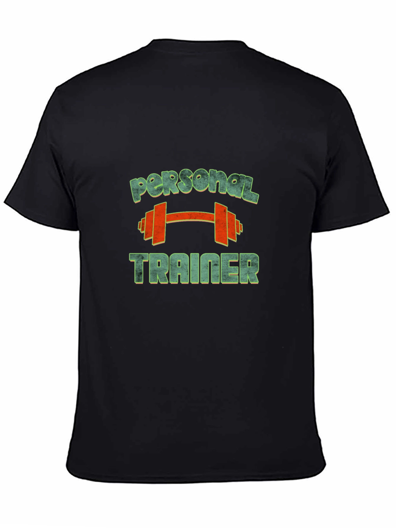 Esta camiseta negra de hombre presenta un diseño llamativo con las palabras "PERSONAL" y "TRAINER" en un estilo distintivo y vibrante, separadas por una barra con pesas en color naranja. La tipografía tiene un efecto desgastado que le da un toque retro y moderno. Confeccionada en un material aparentemente cómodo, esta camiseta es ideal para usar en el gimnasio, durante entrenamientos o para lucir un estilo casual y deportivo en el día a día. Perfecta para entrenadores personales o amantes del fitness que quieran expresar su pasión por el deporte.