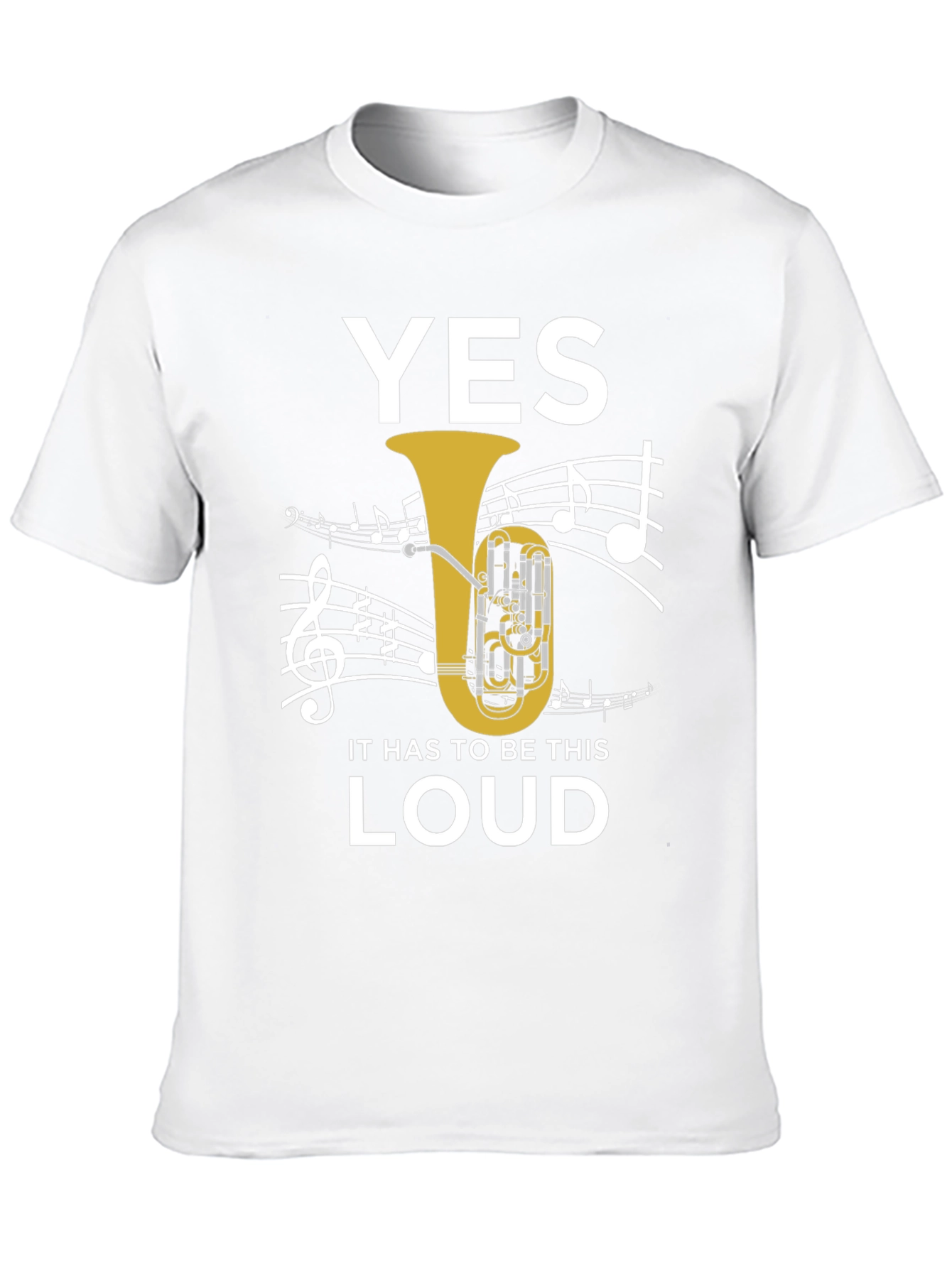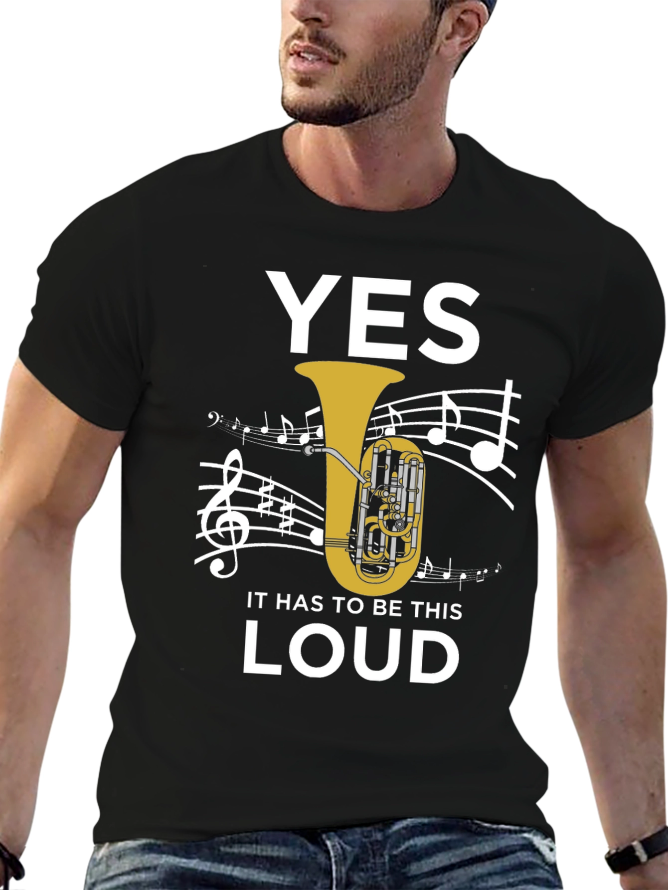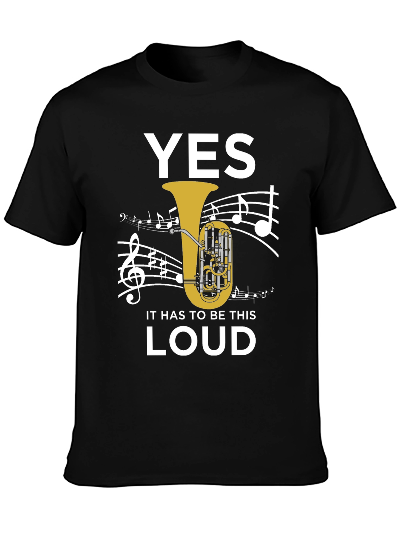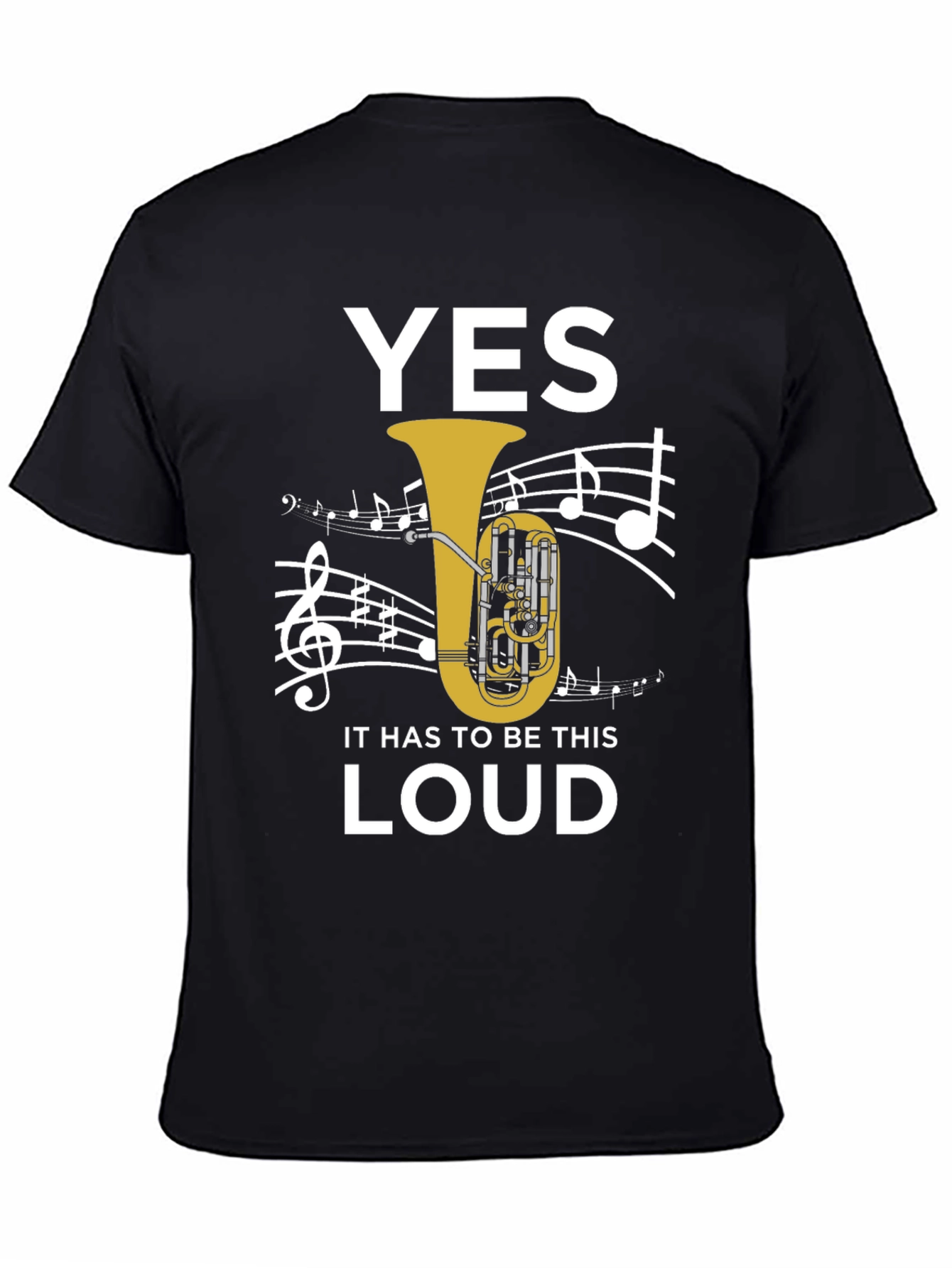 Luce tu pasión por la música con esta llamativa camiseta negra. Presenta un diseño divertido con la frase "Sí, Tiene Que Ser Así de Fuerte", acompañada de una ilustración de una tuba dorada y notas musicales blancas. Perfecta para músicos, amantes de la música y aquellos con un gran sentido del humor. El diseño destaca sobre el fondo negro, creando un contraste audaz y atractivo. Ideal para usar en conciertos, ensayos o simplemente para expresar tu amor por la música en tu día a día. ¡Una declaración de estilo musical!