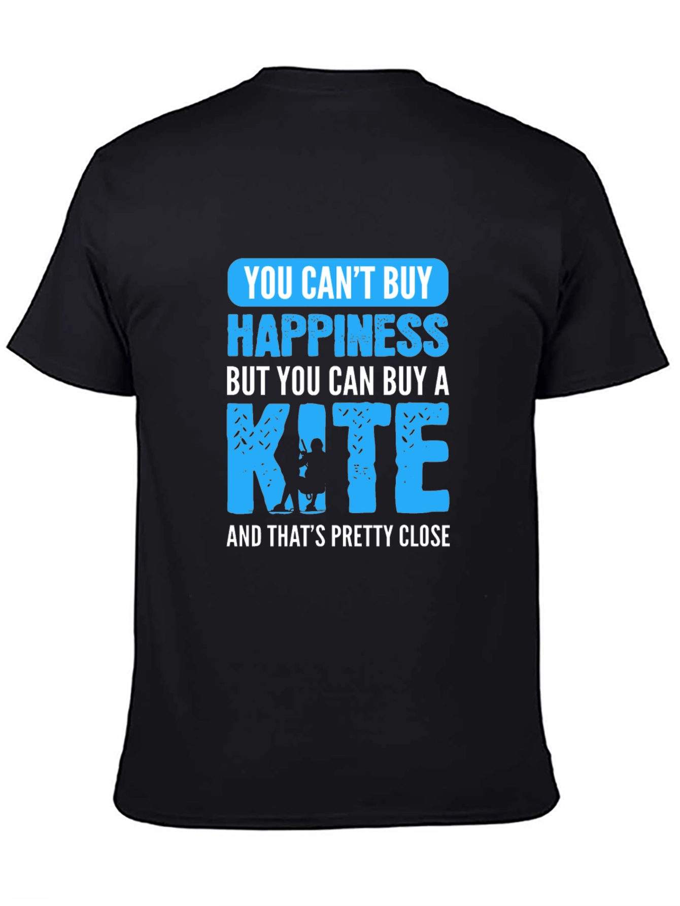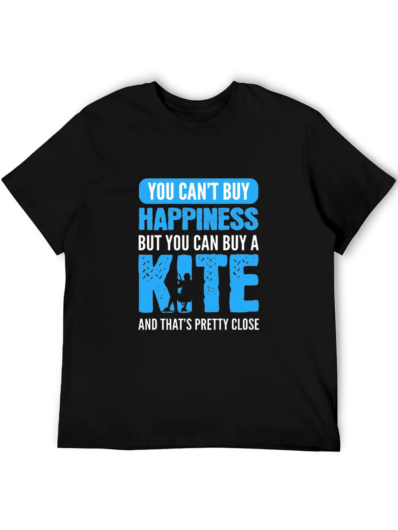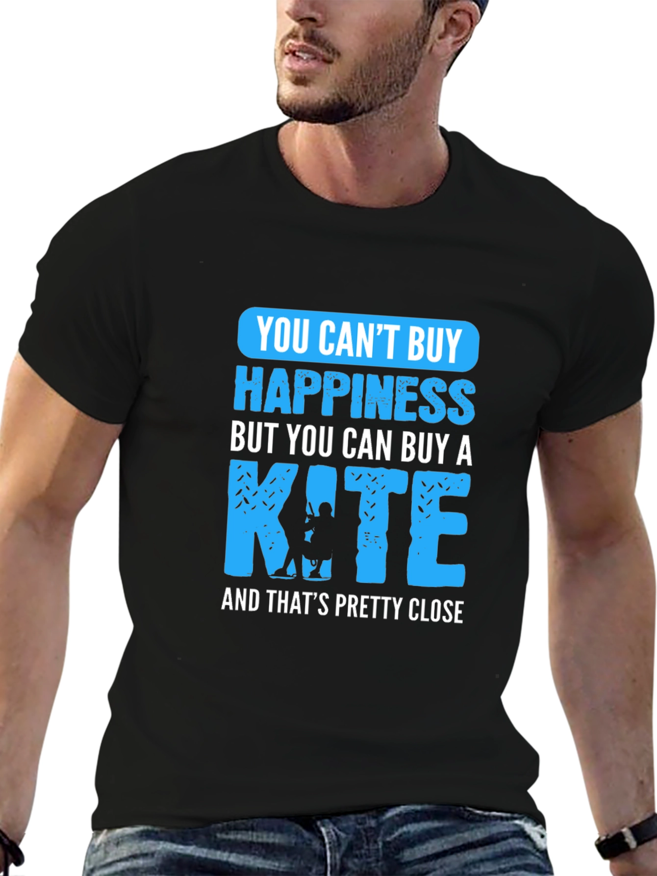 Esta camiseta negra de manga corta presenta un diseño llamativo en color azul claro con el texto "YOU CAN'T BUY HAPPINESS BUT YOU CAN BUY A KITE AND THAT'S PRETTY CLOSE", destacando un mensaje divertido y original. Perfecta para los amantes de las cometas y aquellos que buscan una prenda cómoda y con estilo. Su diseño casual la hace ideal para llevar en el día a día, ya sea para una tarde de paseo, practicar deportes al aire libre o simplemente relajarse en casa. Fabricada con materiales suaves y duraderos, esta camiseta ofrece una gran comodidad y resistencia. ¡Exprésate con esta camiseta única y añade un toque de humor a tu guardarropa!