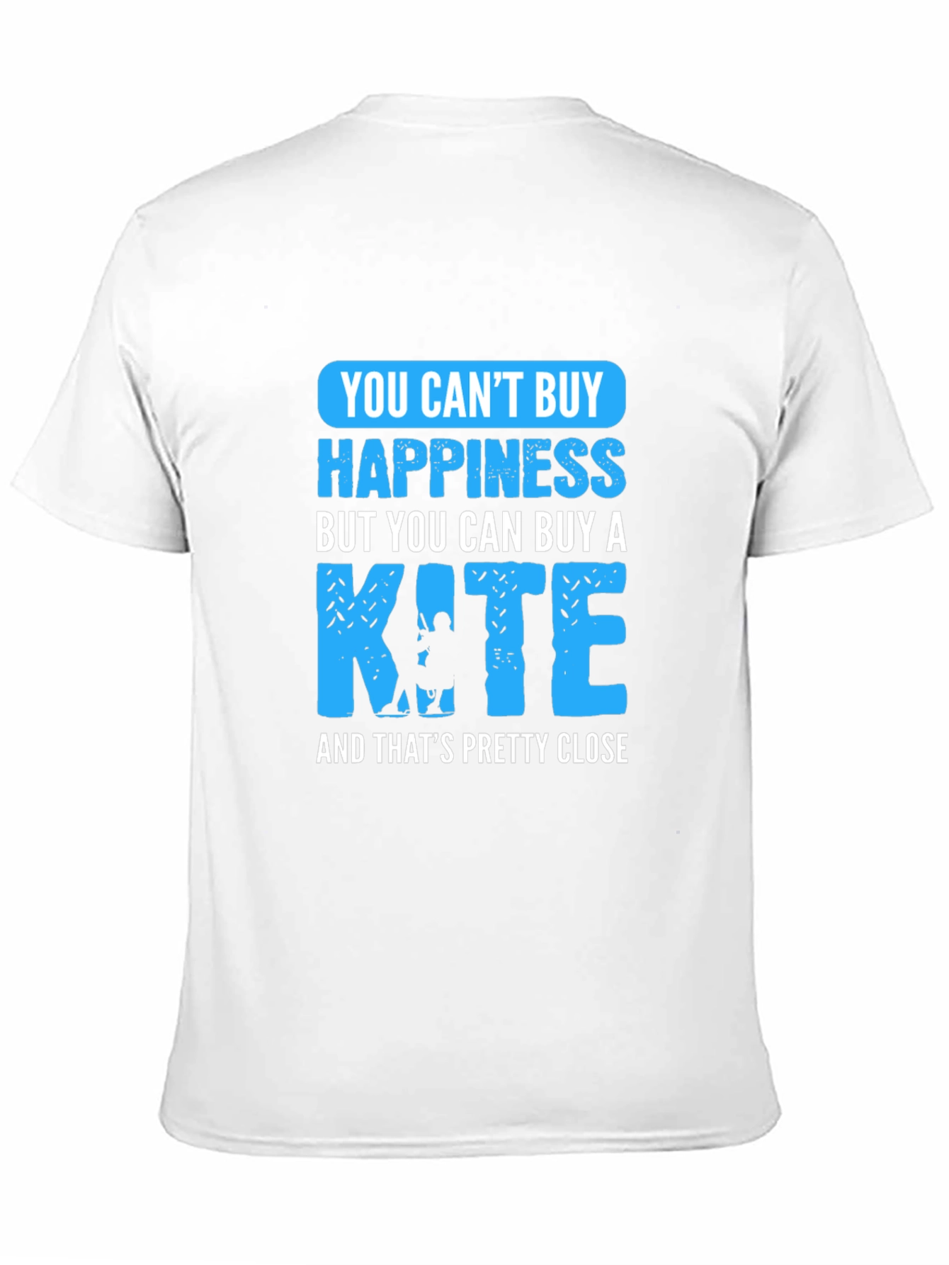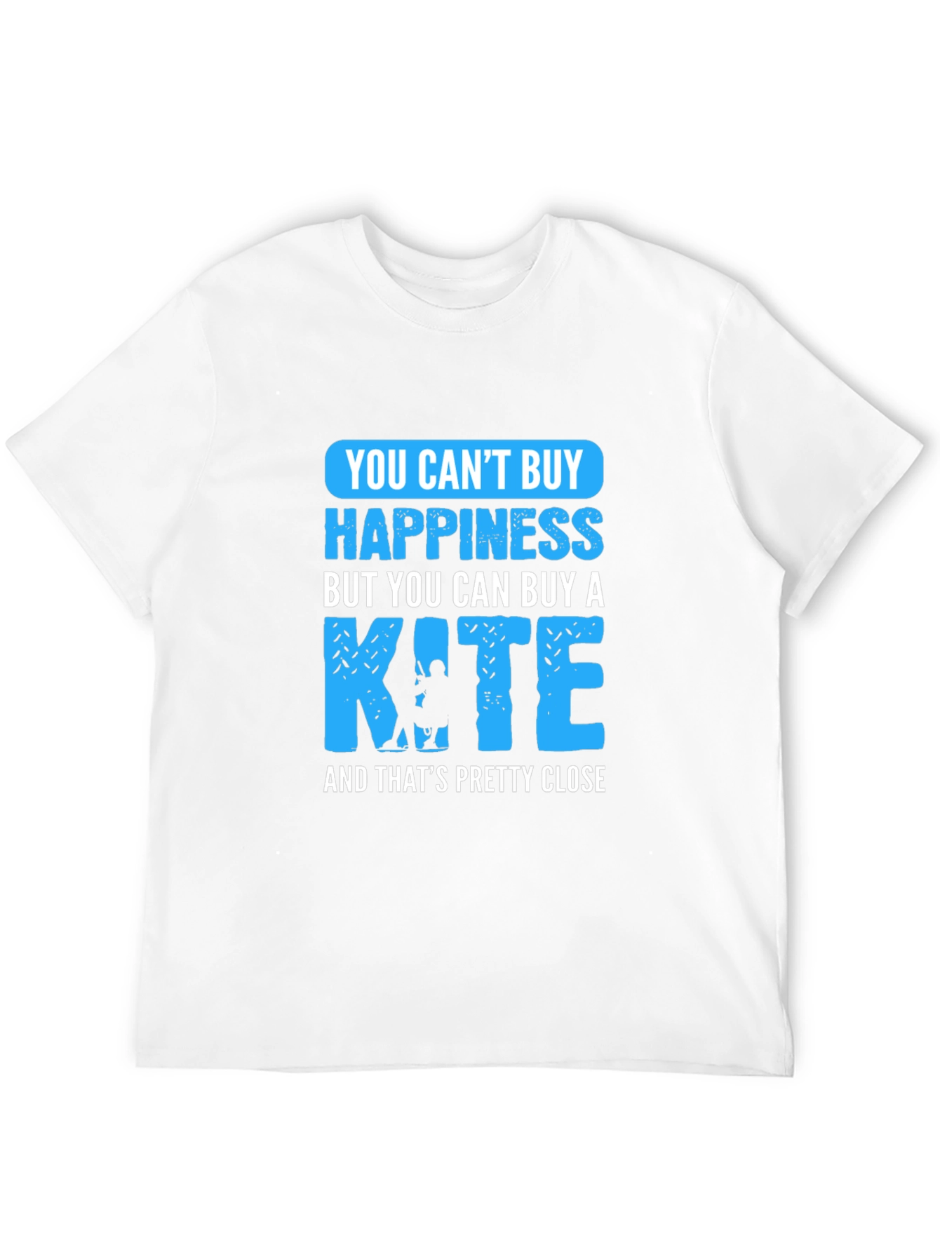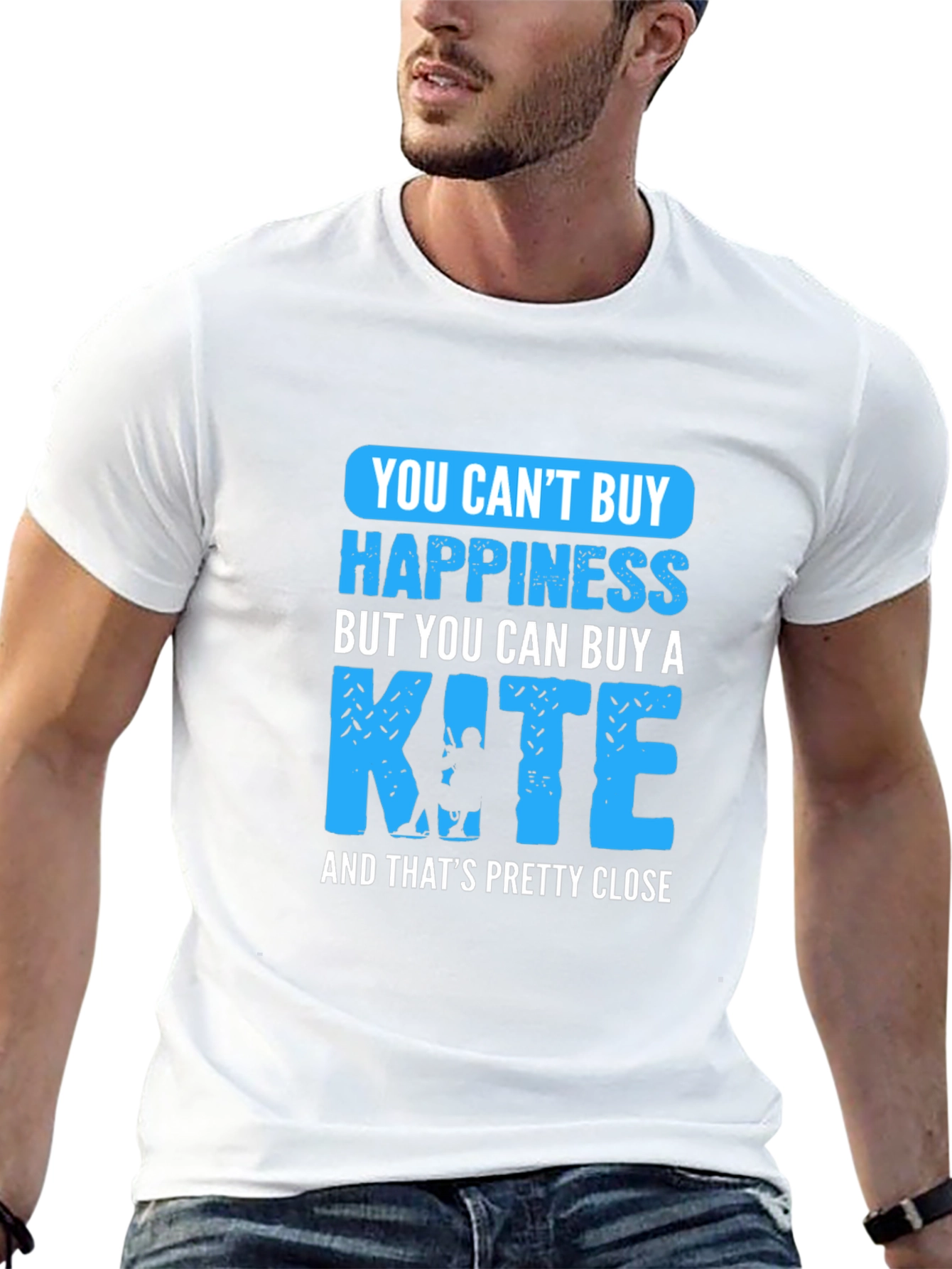 Esta camiseta negra de manga corta presenta un diseño llamativo en color azul claro con el texto "YOU CAN'T BUY HAPPINESS BUT YOU CAN BUY A KITE AND THAT'S PRETTY CLOSE", destacando un mensaje divertido y original. Perfecta para los amantes de las cometas y aquellos que buscan una prenda cómoda y con estilo. Su diseño casual la hace ideal para llevar en el día a día, ya sea para una tarde de paseo, practicar deportes al aire libre o simplemente relajarse en casa. Fabricada con materiales suaves y duraderos, esta camiseta ofrece una gran comodidad y resistencia. ¡Exprésate con esta camiseta única y añade un toque de humor a tu guardarropa!