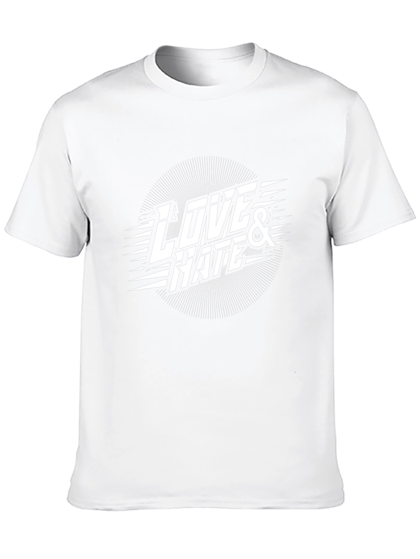 Luce un estilo audaz con esta camiseta negra de manga corta. Presenta un llamativo diseño gráfico en blanco con las palabras "Amor & Odio", rodeado de un patrón radial que irradia energía. Ideal para expresar tu personalidad y actitud. Perfecta para el uso diario, conciertos, o para destacar en cualquier ocasión informal. Su tejido suave asegura comodidad durante todo el día. ¡Atrévete a mostrar tu lado más auténtico con esta prenda única!
