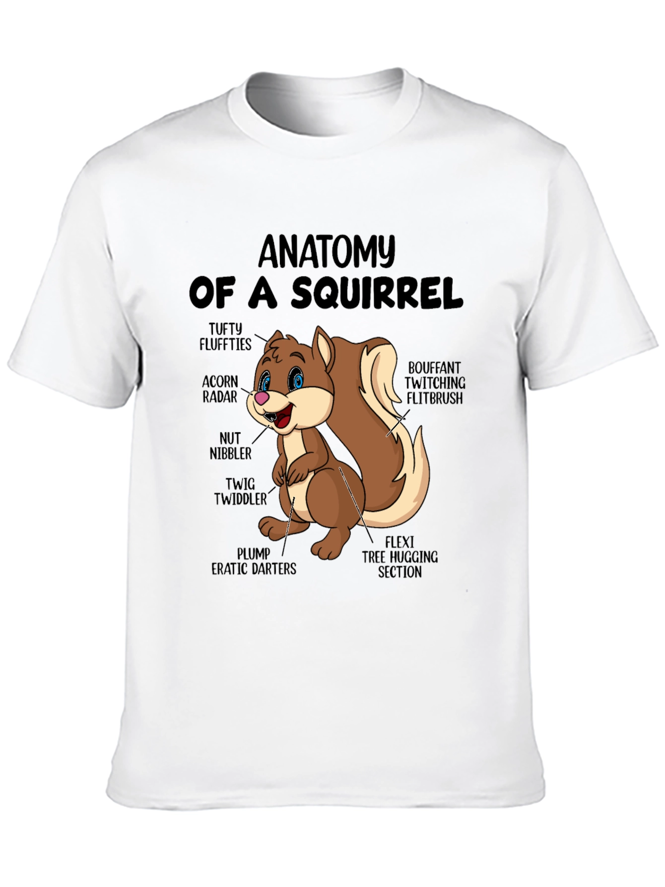 Esta camiseta negra de manga corta presenta un divertido diseño de "Anatomía de una Ardilla". El gráfico muestra una ardilla caricaturizada con etiquetas humorísticas para sus diferentes partes, como "Tufty Fluffties", "Acorn Radar" y "Flexi Tree Hugging Section". Es perfecta para los amantes de los animales, la naturaleza y el humor. La camiseta parece ser de algodón o una mezcla suave, ideal para uso diario. Su estilo casual la hace versátil para combinar con jeans, pantalones cortos o faldas. ¡Añade un toque divertido y original a tu guardarropa con esta prenda única!