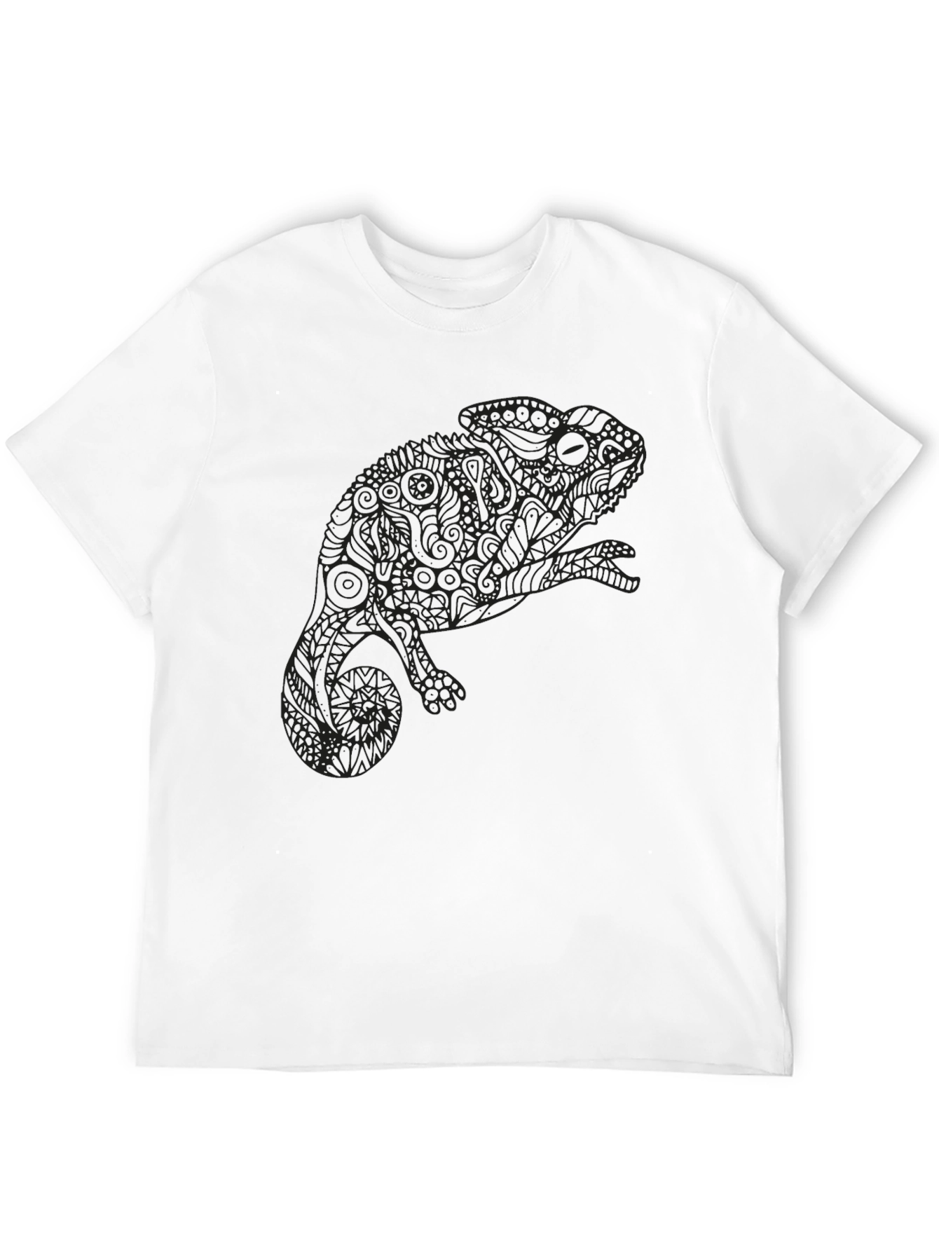 Luce un estilo único con esta camiseta negra de manga corta. El diseño presenta un camaleón con patrones abstractos que le dan un toque original y moderno. Fabricada con un tejido suave y cómodo, es perfecta para usar a diario. Combínala con jeans o pantalones casuales para un look relajado pero con estilo. Ideal para quienes buscan una prenda que destaque su personalidad y amor por la naturaleza. Esta camiseta es una excelente opción para añadir un toque artístico a tu guardarropa.