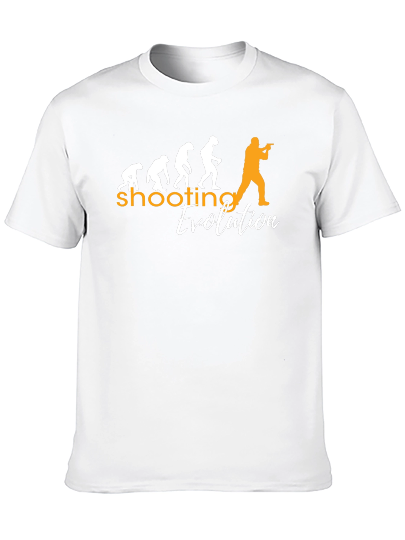 Esta camiseta negra de manga corta presenta un diseño llamativo y original. Muestra la evolución del ser humano hasta convertirse en un tirador, con figuras que representan las distintas etapas. La palabra "shooting" destaca en color naranja, mientras que "Evolution" se presenta en blanco, creando un contraste visual atractivo. Ideal para amantes del tiro deportivo, cazadores o cualquier persona que aprecie un diseño creativo y con significado. Perfecta para uso diario, eventos informales o como regalo original. Su corte clásico garantiza comodidad y estilo. ¡Muestra tu pasión por el tiro con esta camiseta única!