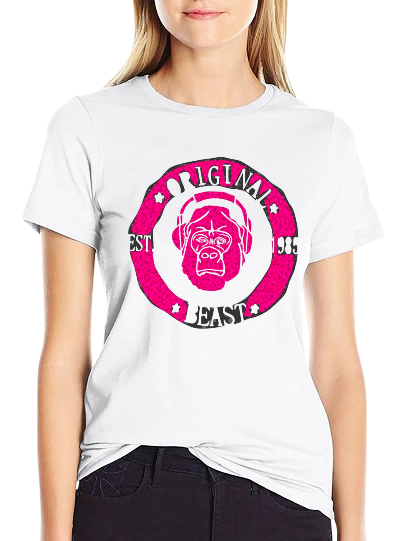 Luce un estilo audaz con esta camiseta negra de hombre. Presenta un llamativo estampado circular en color rosa con la imagen de un gorila con auriculares. El diseño incluye la palabra "Original" en la parte superior y "Beast" en la inferior, con la inscripción "Est 1985" a los lados. Ideal para destacar en cualquier ocasión informal y expresar tu personalidad única. Fabricada con materiales de alta calidad para una comodidad duradera. ¡Atrévete a marcar la diferencia con esta prenda original y llamativa!