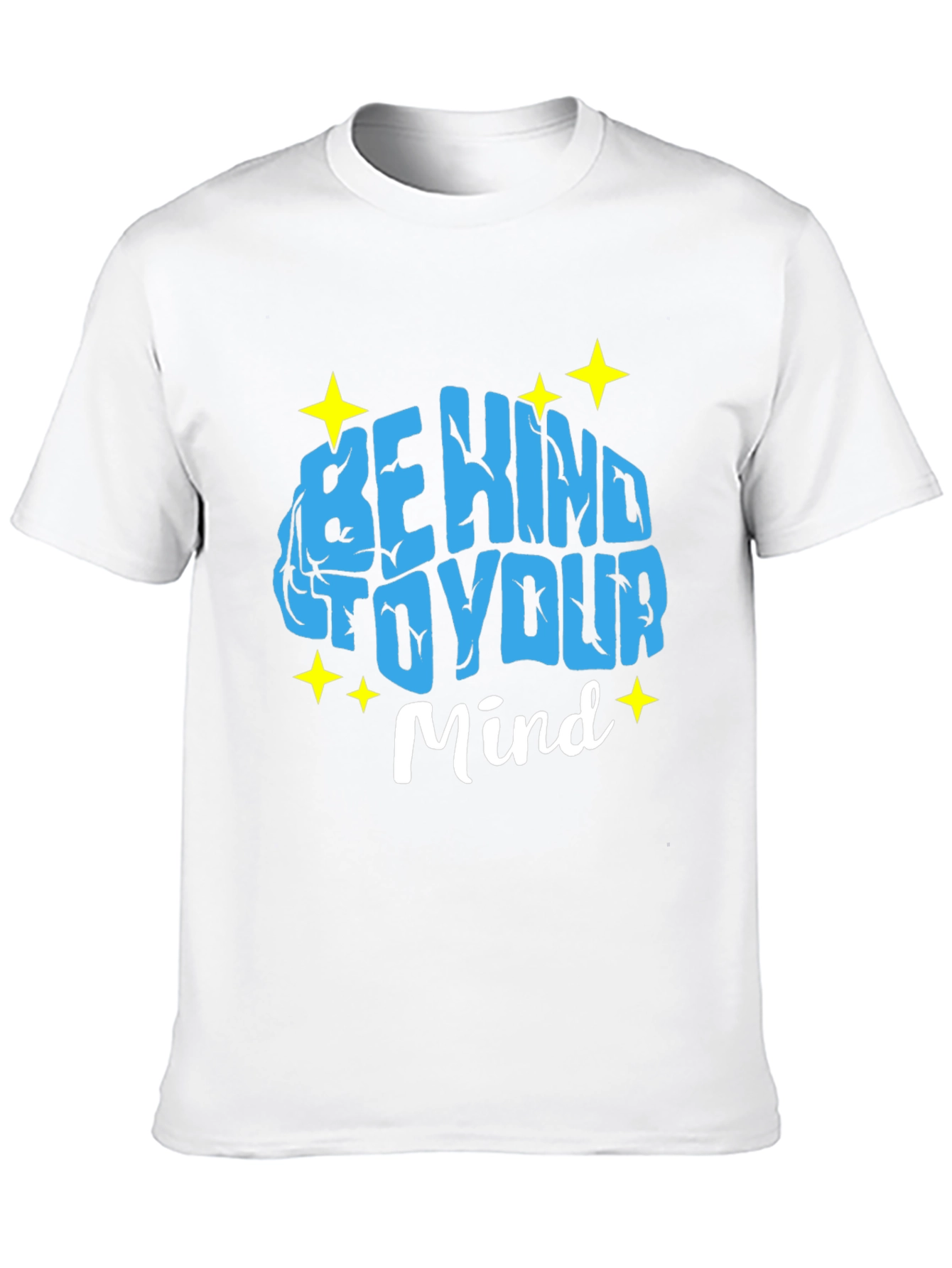 Luce esta original camiseta negra con un diseño llamativo que te invita a la reflexión. El estampado presenta un cerebro estilizado en color azul cielo, rodeado de estrellas amarillas, con la frase "Sé amable con tu mente" en letras blancas. Perfecta para aquellos que buscan un estilo único y con un mensaje positivo. Confeccionada con materiales suaves y cómodos, ideal para el día a día, expresar tu individualidad y promover el bienestar mental. Combínala con tus jeans favoritos o pantalones casuales para un look relajado pero con significado. ¡Una prenda que no puede faltar en tu armario!